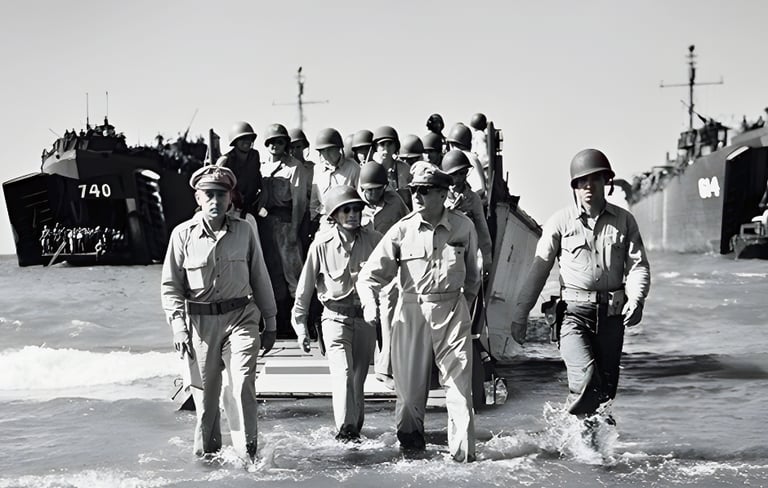 Within a few hours, U.S. troops had taken the towns of Lingayen and San Fabian. The airfield as well as the roads and bridges outside the towns were secured. A beachhead 20 miles long and four miles deep had been established in the Lingayen Gulf along the White, Blue, Crimson and Yellow beaches. Jubilant Filipinos came into the beaches and roads greeting the allies with great hope and expectation towards a bright future. At about 2 in the afternoon, Gen. Douglas Mac Arthur has returned in the island of Luzon. He landed with most of his staff and waded through the surf and sand into the crowd of cheering Filipinos. Over the next few days, close to 200,000 U.S. troops landed in the Lingayen Gulf.